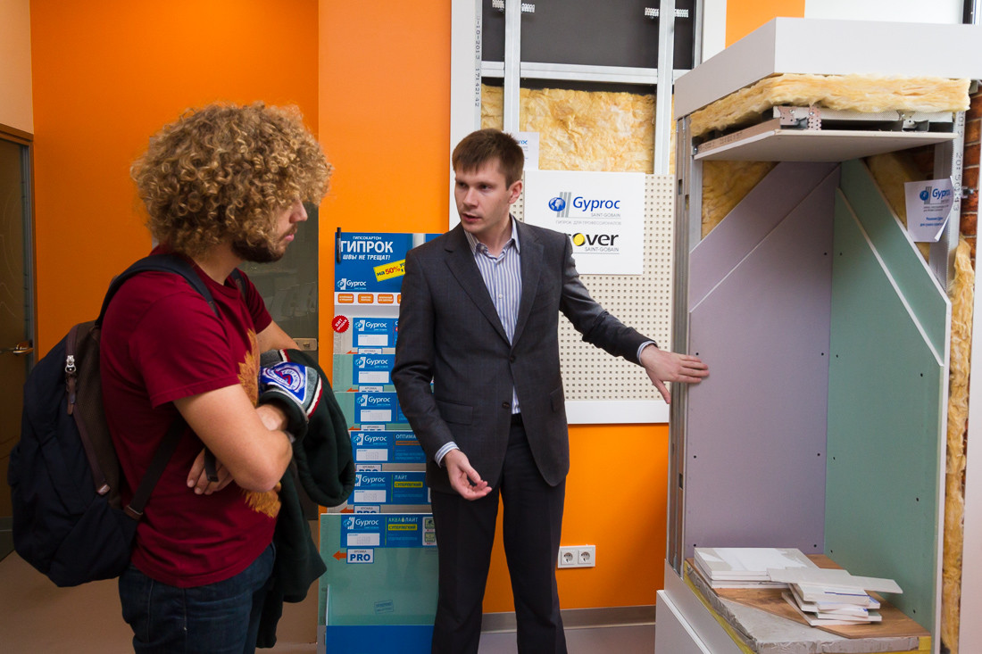 Что вообще за компания Gyproc? Это один из крупнейших мировых производителей гипсокартона. Входит она в корпорацию «Сен-Гобен». Ей, кстати, 350 лет. И производит она не только гипсокартон, но и множество различной продукции, от бутылок и стройматериалов до автомобильных комплектующих. В России ее продукция тоже повсюду. Стекла компании можно увидеть на поездах «Сапсан», «Ласточка», «Стрижи». Да что там поезда, 80 процентов трехлитровых банок в нашей стране изготавливают на ее заводе.