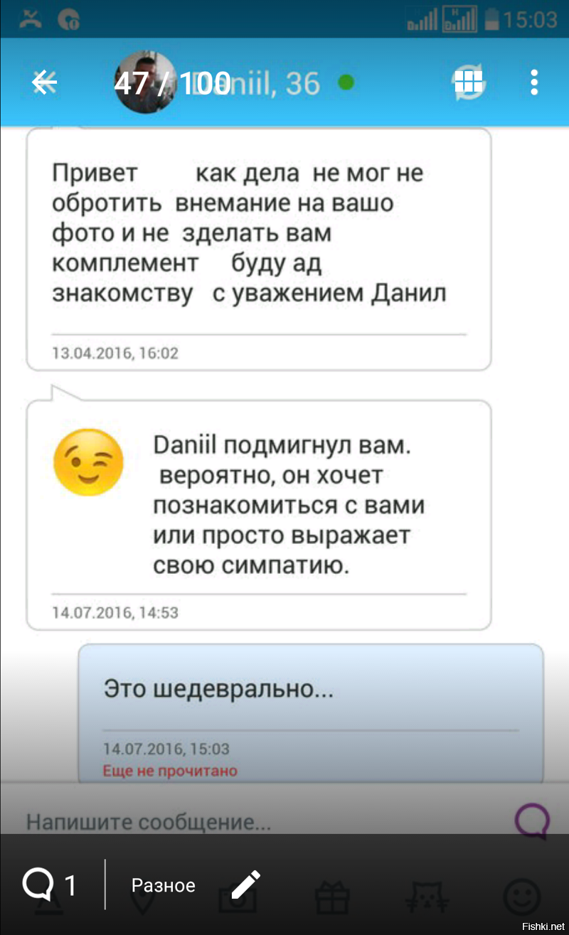 Занесла меня как-то нелегкая на сайт знакомств. В реальной жизни мужчины редко осмеливаются подойти и познакомиться, решила попробовать подобный способ знакомства с противоположным полом. Помимо адекватных ребят, там полно всяких извращенцев и просто дураков). Изначально не было задачи делиться подобной перепиской с массами, но друзья посоветовали выложить))Мне все-равно, + или - поставите. Достаточно, если несколько человек улыбнуться, читая мои скрины))