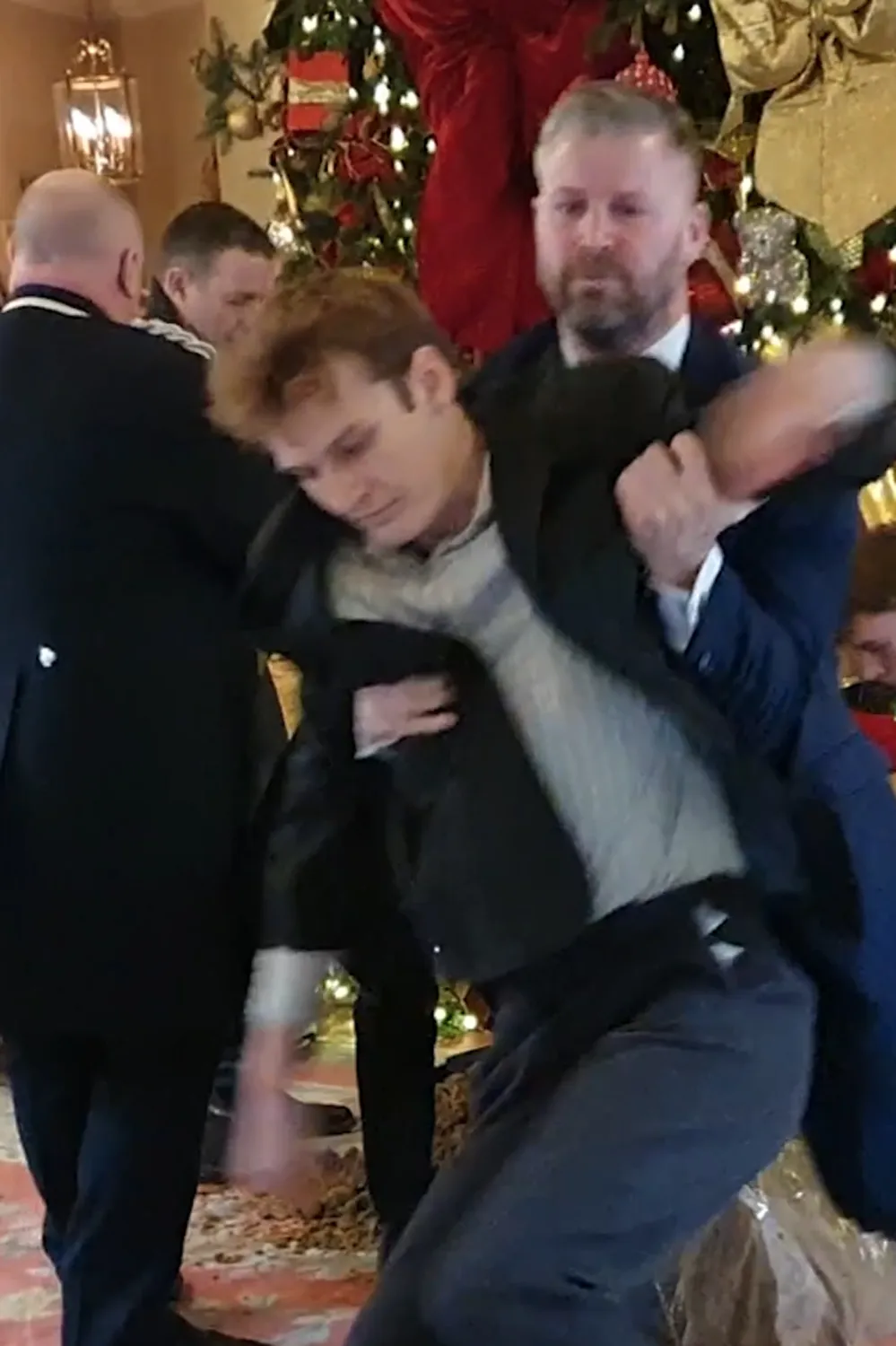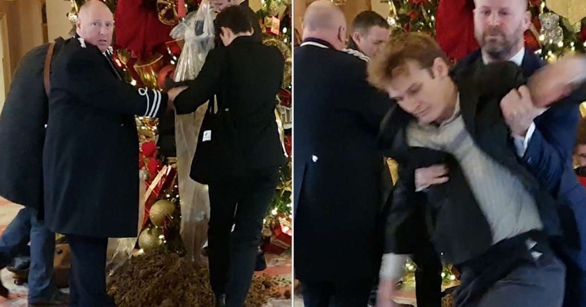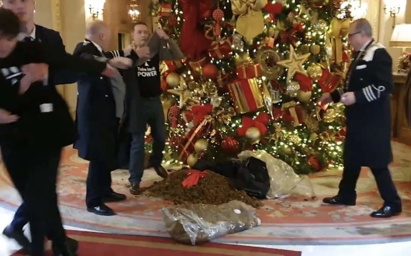 В среду в 12:05 три человека собрались у праздничной ёлки отеля Ritz в Мейфэре. Гости мгновенно достали три пакета и высыпали дурнопахнущее содержимое на ковёр. Охранники пытались остановить нарушителей, но было уже поздно.
