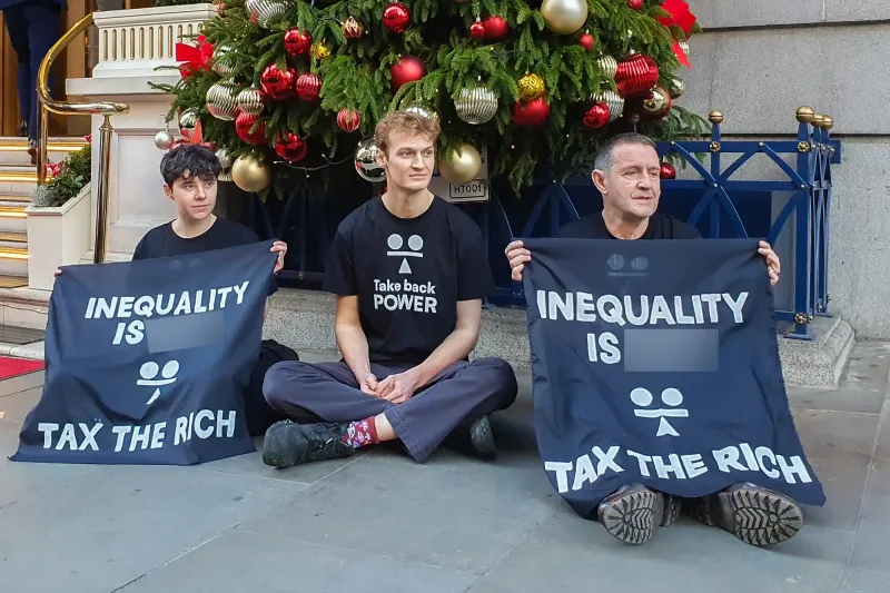 Третий представитель Take Back Power заявил: «Сверхбогатые значительно увеличили свои состояния после пандемии, в то время как треть британских детей страдают и растут в неблагополучных условиях».