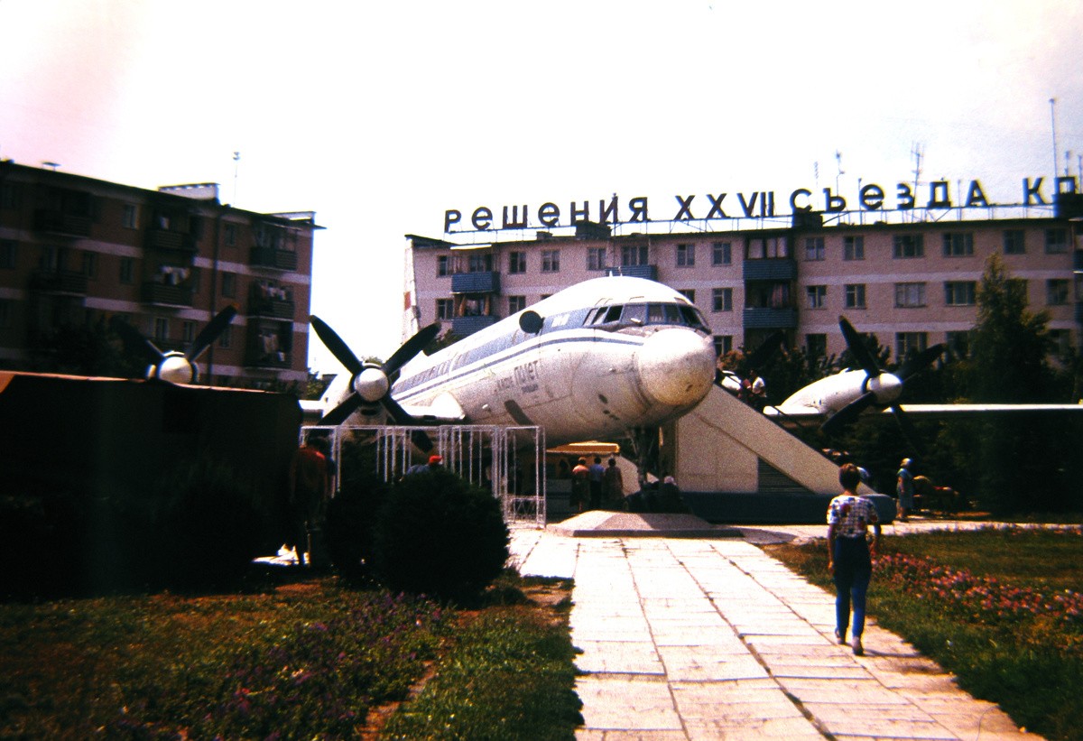 После списания в начале 80-х годов самолёт Ил-18 переоборудовали в кафе. Стоял он на этом месте примерно до середины девяностых, после чего был порезан.