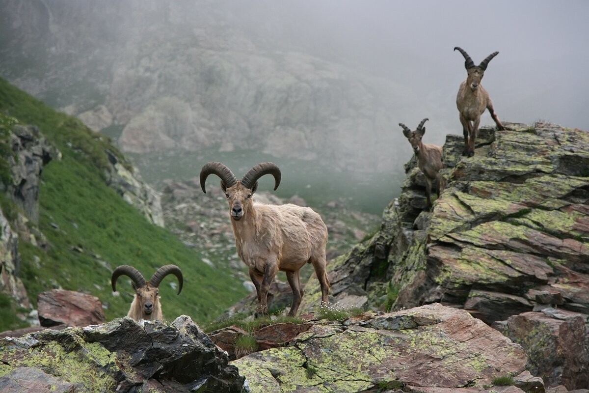 15. Кавказские туры расслабленно рассматривают окрестности Тебердинского заповедника - государственного природного биосферного заповедника в Карачаево-Черкесской Республике