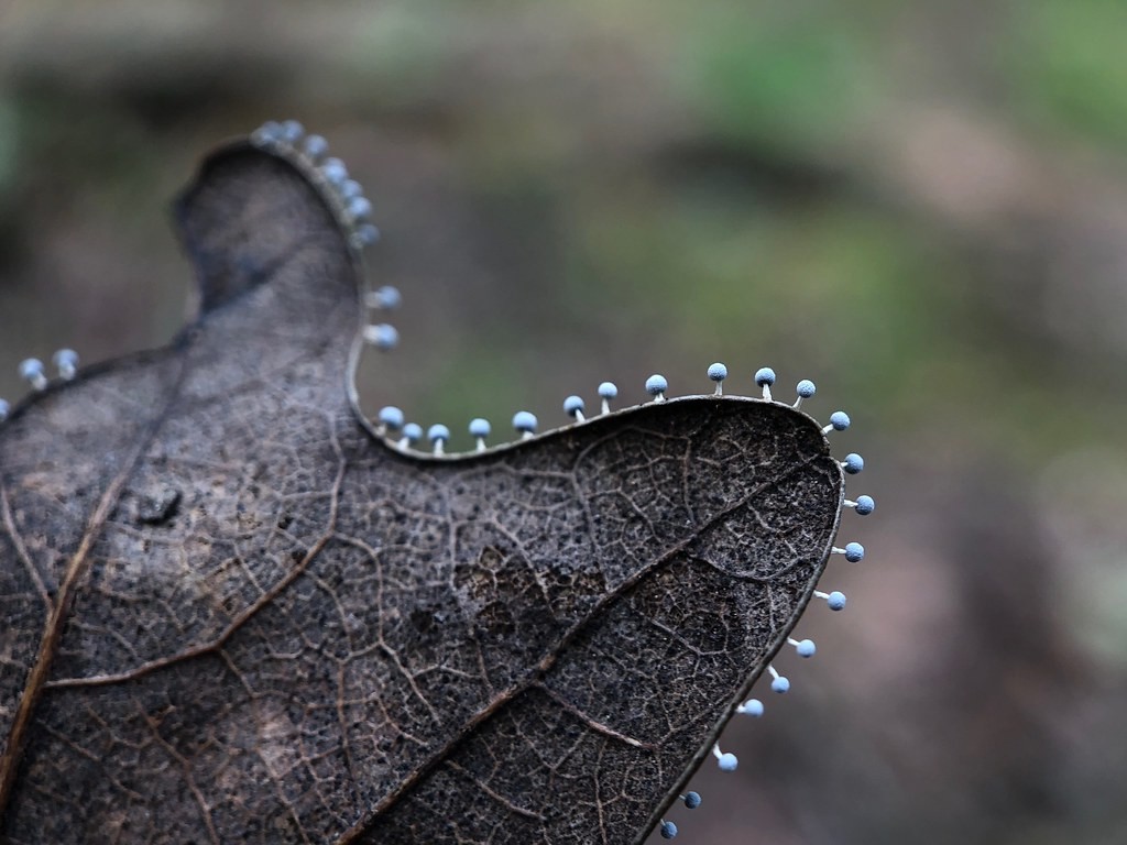15. Хоровод крошечных грибов на сухом листе