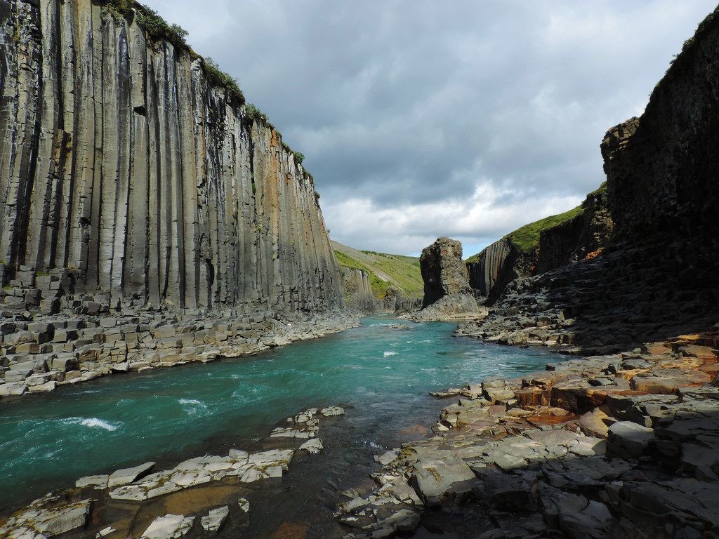 11. Исландский каньон Студлагил с базальтовыми колоннами, расположенный в долине Йокулдалур на востоке страны