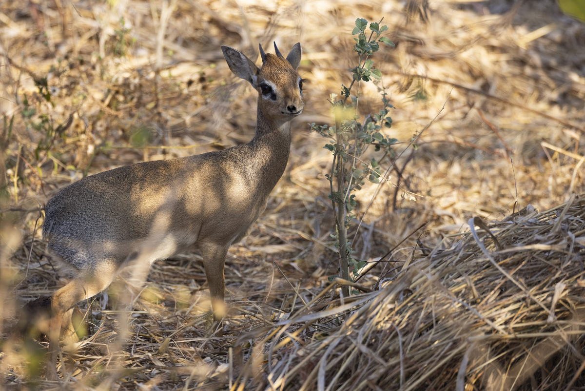 Дикдик — мастер незаметности. Если он чувствует опасность, он не бежит, а исчезает. Замирает, становится тенью. Я вижу их очень часто — антилопы мелькают в золотом свете, пересекают дорогу, стоят в кустах буквально в шаговой доступности. Но стоит навести камеру — растворяются в гуще. Да так умело, что автофокус сдаётся. Если крошку-антилопу заметили, дикдик уносит ноги, как заведённый. Хаотичные прыжки, зигзаги, рваный рывок — он превращается в непредсказуемую неуловимую точку. Особенно изящны их личные «тропы побега» — мини-автобаны, заранее проложенные по краю территории. По ним дикдик разгоняется до 40 км/ч! Даже леопарды с их ловкостью бросают погоню: слишком нервно, слишком сложно, слишком мало пользы. А для фотографа каждая удачная фотография — маленькая победа.