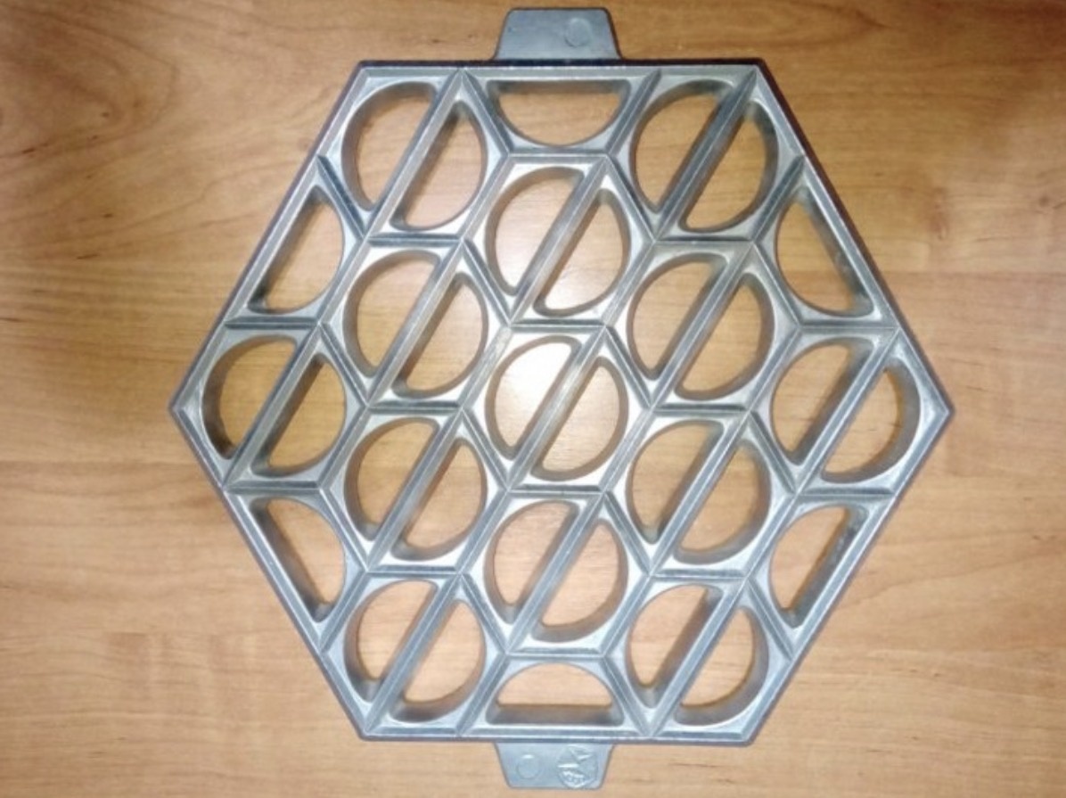 Как запастись едой для большой семьи на длительный срок, если все взрослые работают? Конечно, налепить гору вареников и пельменей, которые хранятся едва ли не бесконечно в морозилке. И в любой день достаточно бросить их в кипяток, немного поварив, чтобы получился сытный и очень вкусный обед или ужин. Именно по таким соображениям в эпоху СССР целые семьи уделяли иногда выходной для того, чтобы налепить вареники и пельмени. А чтобы упростить задачу, промышленность предложила вот такую конструкцию. С ней процесс шел намного быстрее! Блюдо же получалось не менее вкусным. Все-таки домашнее! Конечно, можно сегодня купить в магазине вареники с любой начинкой, пельмени с разными видами мяса.