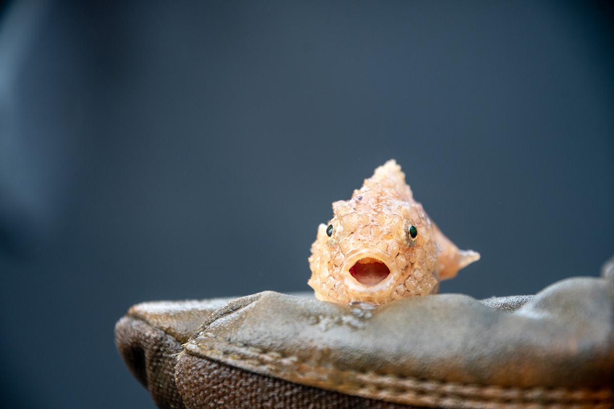 Равно как и всем остальным медленным созданиям: притворившись камушком! В случае нашего круглопёра — буквально. Бугристые пластины, заменяющие рыбёшке чешую, помогают ей маскироваться на любом неоднородном ландшафте. От зарослей морской растительности и коралловых рифов до скалистых берегов вулканических островов.