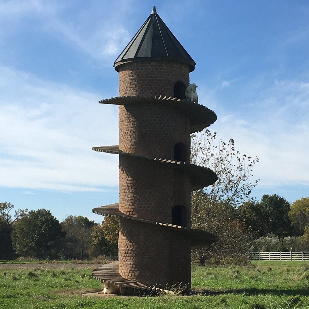 Он уговорил каменщика, который когда-то строил его дом, выйти из отставки и взяться за необычный проект. Для строительства специально заказали партию кирпичей ручной работы из Северной Каролины. Три месяца работы завершились появлением башни с медной крышей.