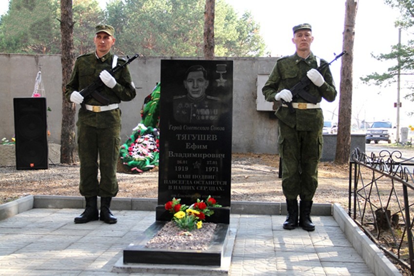 О подвиге Е. В. Тягушева С. Рослым написана документальная повесть «Огонь на себя».