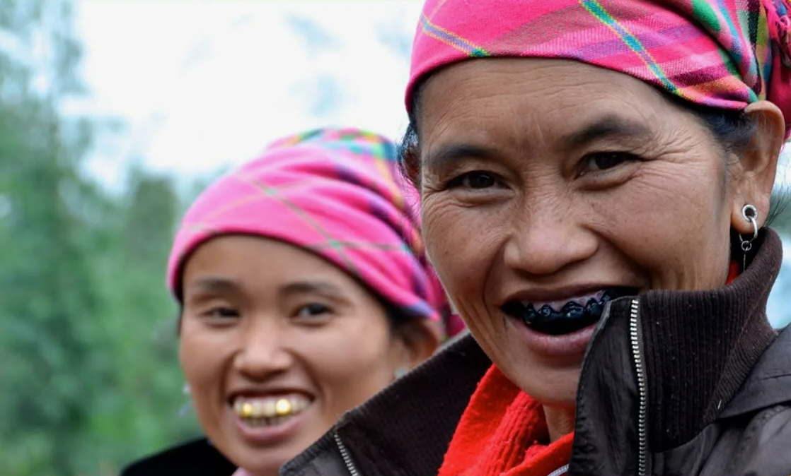 Это не самый щадящий ритуал, черный берется отнюдь не от сажи. В процессе используются кислые фрукты, или сразу кислый сок на зубы, чтобы «подъел» чуть эмаль. И только затем красят углем или сосновой смолой. Некоторые также жуют орехи бетеля, смешанные с табаком и известью. Как вы понимаете, такое не смывается, а проникает за счет кислоты в цвет зуба. В некоторых районах провинции Юньнань до сих пор можно увидеть пожилых людей с почерневшими зубами — живое напоминание об этом исчезающем обычае.