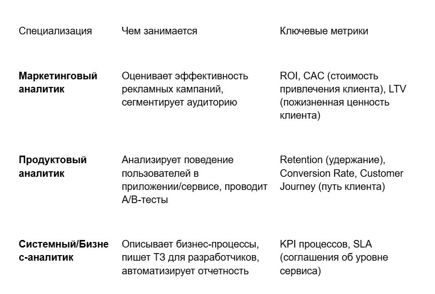Эти роли пересекаются, но акценты разные. Маркетолог работает с рекламными бюджетами, продуктовик — с поведением пользователей, системный — с архитектурой процессов. Выбирайте то, что ближе к вашему прошлому опыту.