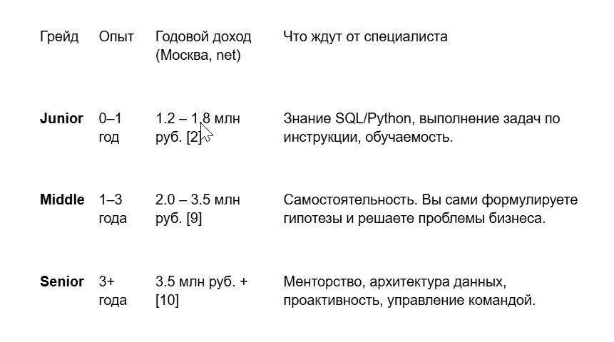В аналитике прозрачная система грейдов. Чем больше ответственности вы берете, тем больше платит бизнес.