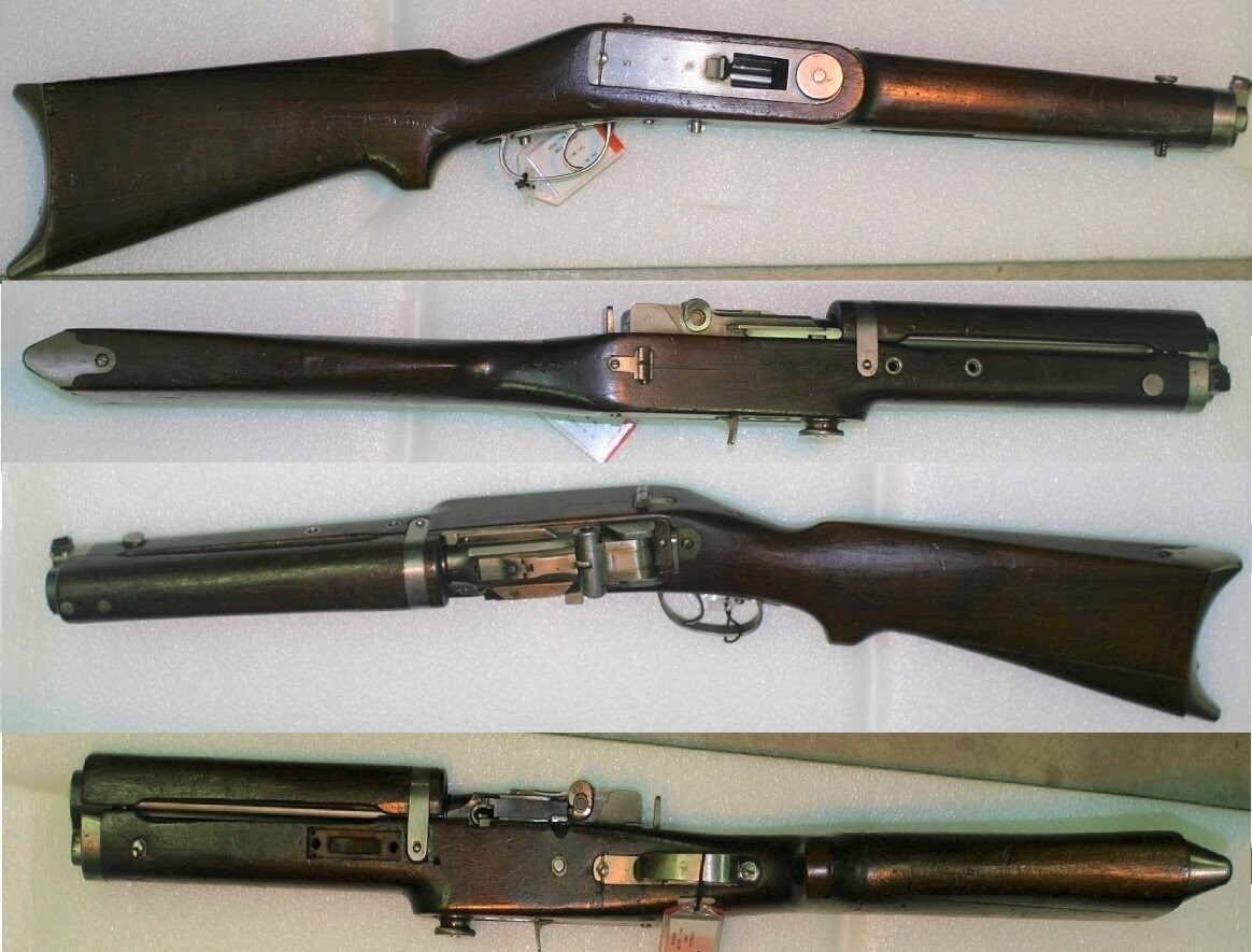 Последняя деталь была абсолютно необходима: оружие весило не так, чтобы много, 4,8 кг (без патронов), но с балансом была полная беда. Так что предполагалась, скорее всего, установка оружия на каком-нибудь самодвижущемся механизме (например, самолете).
