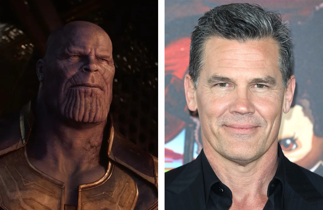Джошу Бролину пришлось пройти примерно через то же самое, через что прошел и Джеймс Спейдер в роли Альтрона, однако у Джоша ноша была еще тяжелее, ведь он носил не просто антенну, а целый пенопластовый шлем, на котором располагалась камера, снимающая его лицо. Кроме того, Бролин носил пенопластовый костюм, по объему напоминающий размер Таноса, чтобы другие актеры не подходили к нему слишком близко и не «проваливались в текстуры» на монтаже. Интересно, что в последней сцене, в которой Танос находится уже на другой планете после всех событий, играл не совсем Джош Бролин. Его действительно добавили, но лишь с помощью графики, как и абсолютно все остальное.