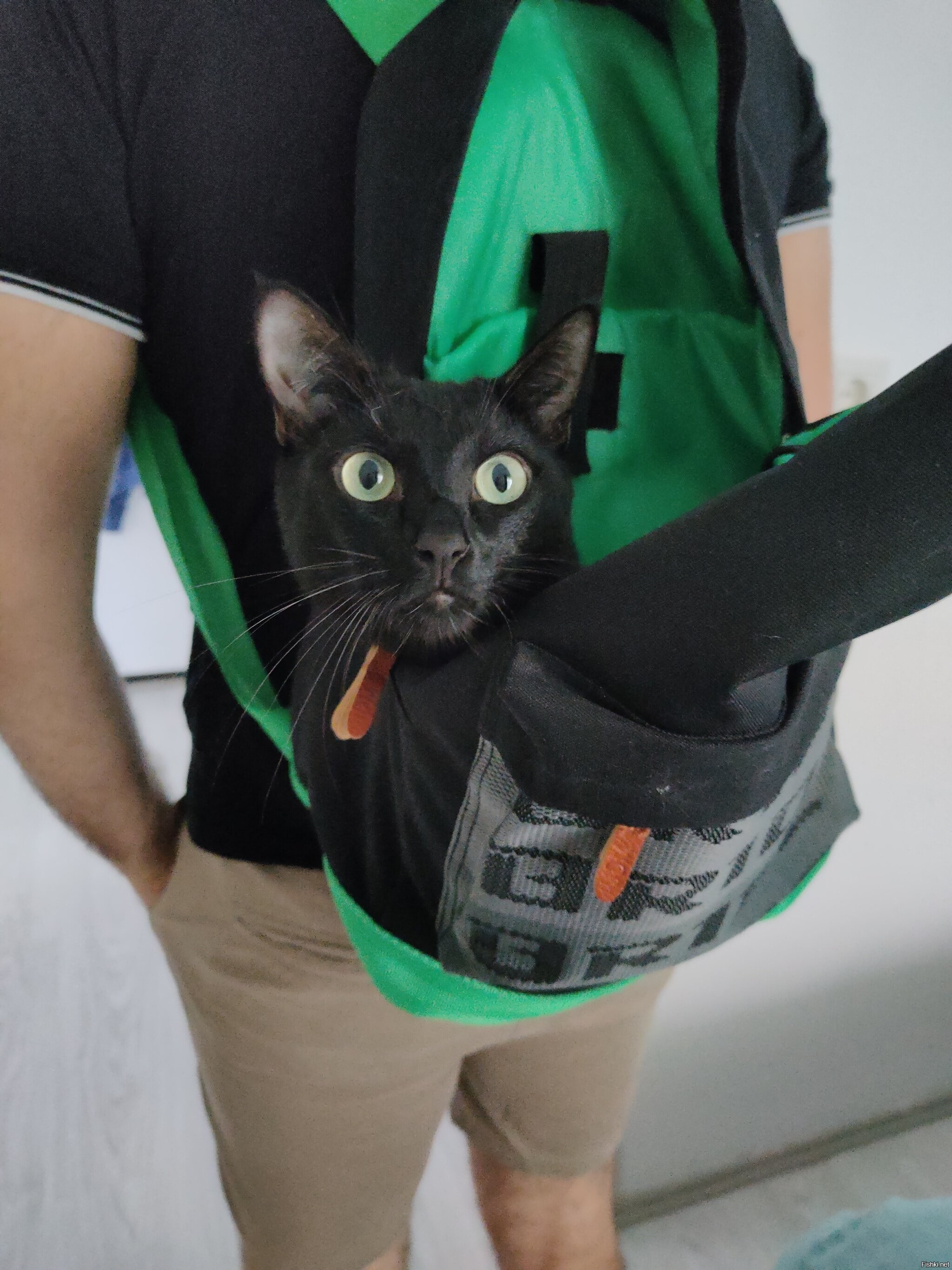 Для поездок у питомца есть целый комплект экипировки: специальный рюкзак, защитные очки и максимально довольное выражение морды. Вместе они катаются на склонах, собирая много внимания.