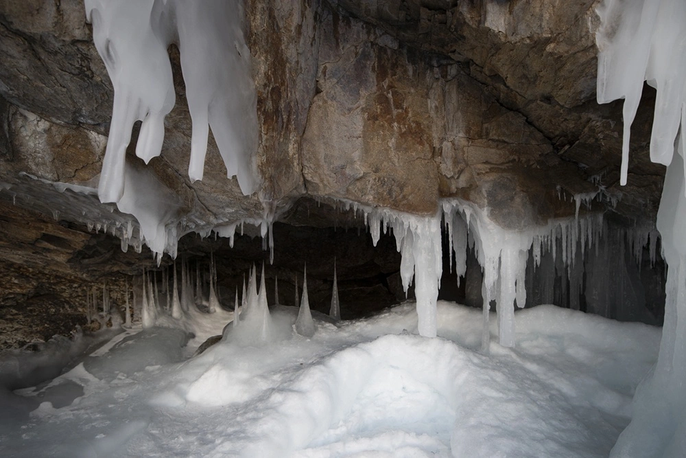 Кунгурская ледяная пещера (Пермский край) Напоминает сложный лабиринт, состоящий из расширенных гротов, соединенных узкими проходами. Каждому из этих пространств присвоено свое название, а самыми большими считаются гроты Великан и Географов.