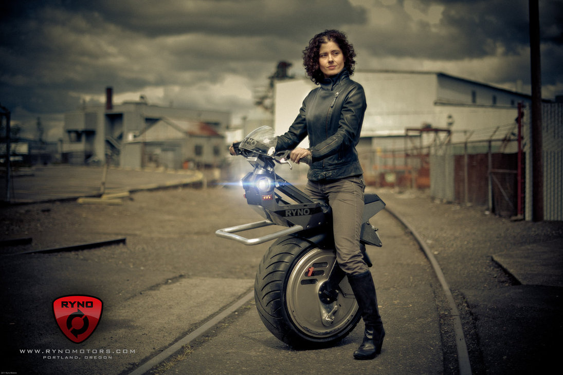 Также, подобно знаменитому самокату, в неподвижном состоянии RYNO самостоятельно балансирует себя в продольном направлении. Боковая же балансировка отдана целиком на откуп наездника. Колесо уницикла несёт на себе широкую 240-миллиметровую покрышку, которую обычно можно увидеть лишь на больших старых Harley-Davidson. Справа расположена рукоятка тормоза, которая работает совсем не так, как вы ожидаете, а большая часть контроля реализуется исключительно положением тела ездока.