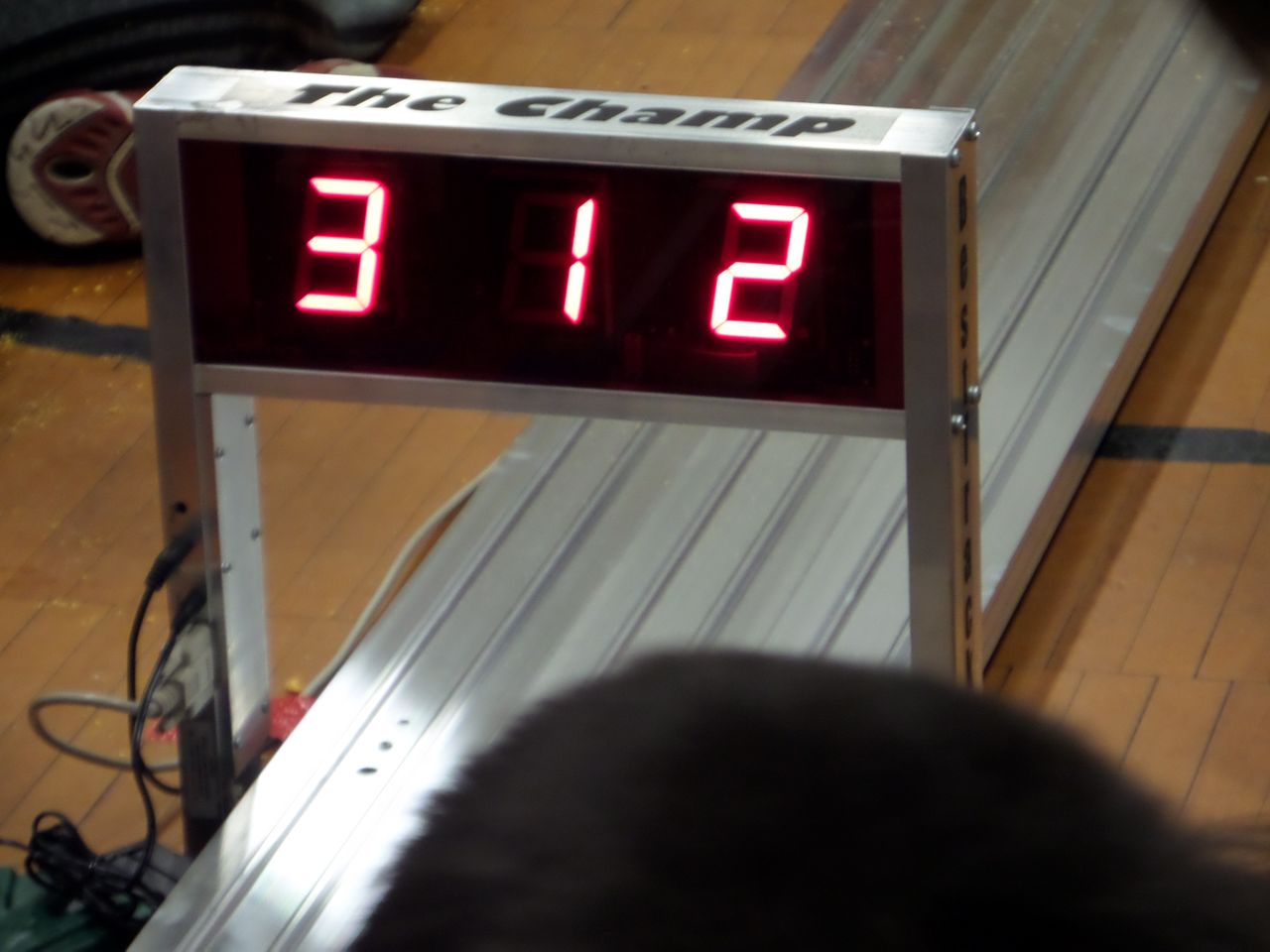 Каждое трио машинок запускается по 3 раза, чтобы каждая машинка прошла по всем 3 колеям — зачитывается лучшее время из 3 заездов.