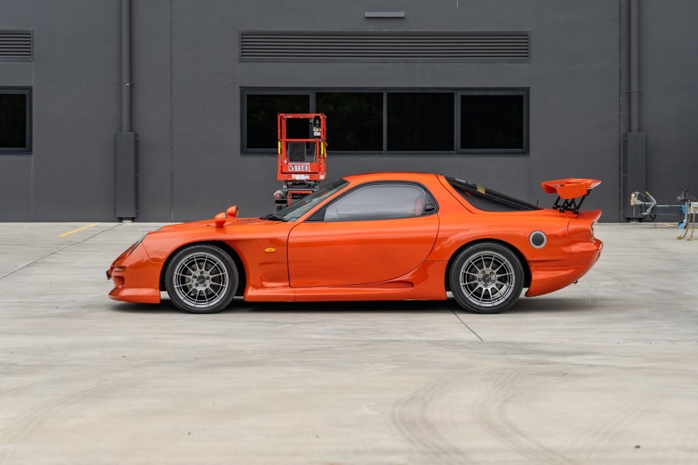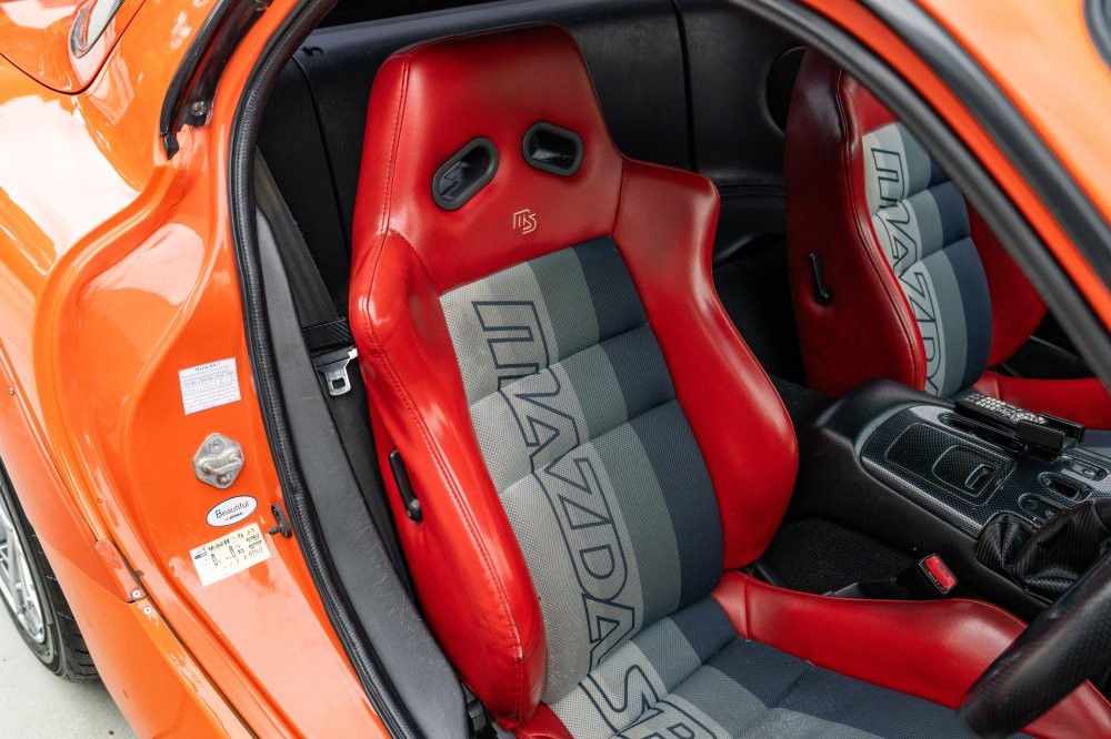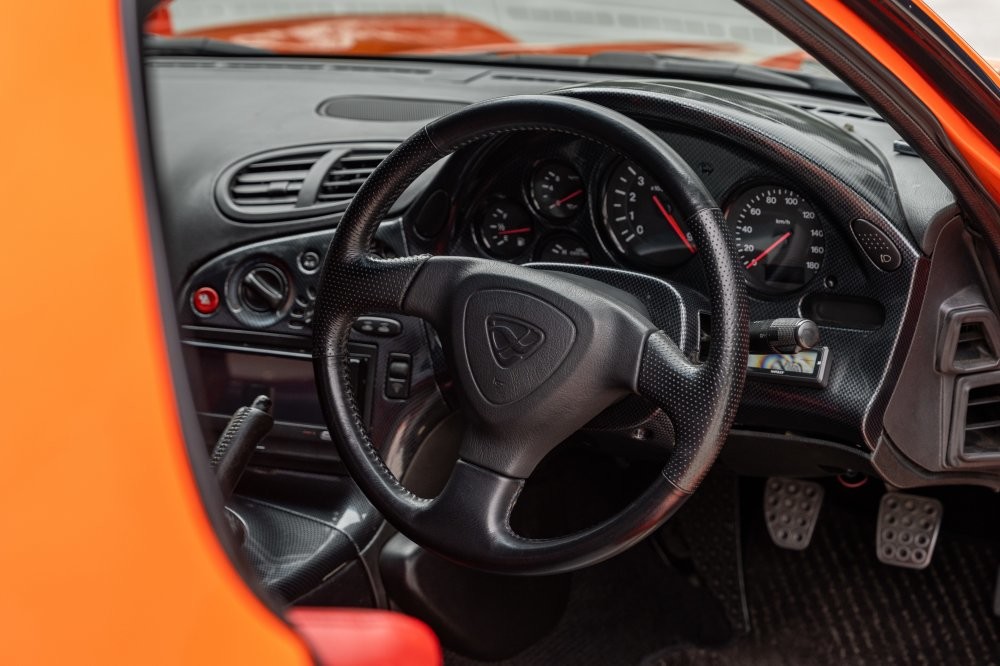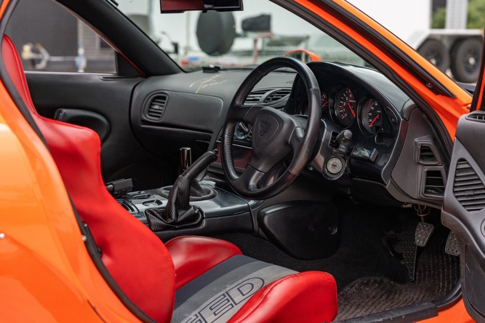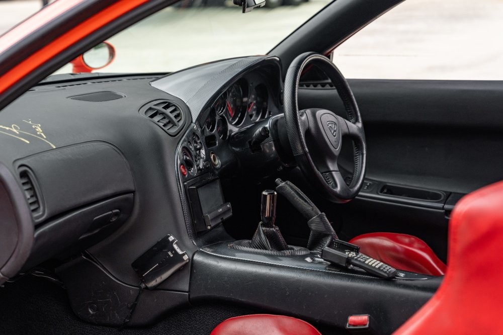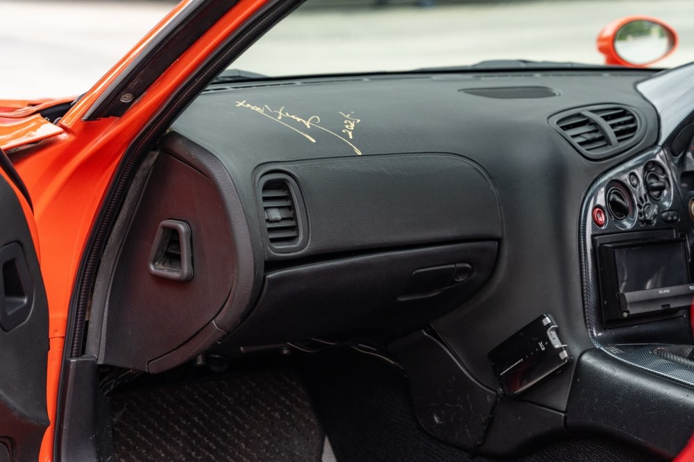 Спортивные кресла в салоне получили новую отделку в красных тонах. В остальном интерьер RX-7 остался прежним, если не считать автографа Кейичи Цутия на левой стороне передней панели. Это один из самых известных дрифтеров мира, носящий прозвище Drift King. Не тронули тюнеры, как заявляет площадка, и 1,3-литровый роторный двигатель мощностью около 252 сил, сопряжённый с пятиступенчатой «механикой».