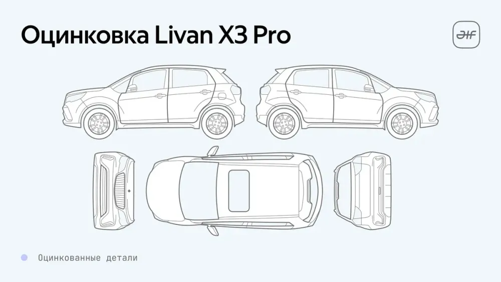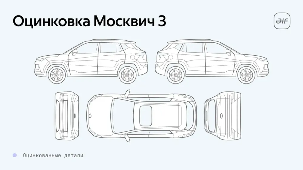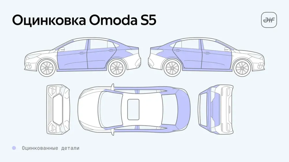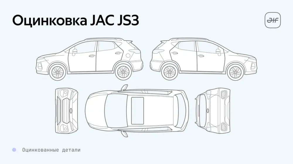 У Omoda S5 и Solaris KRX кузова оцинкованы лишь частично, при этом с разным подходом — у седана защитное покрытие имеют в основном навесные детали, а у хэтча силовые. JAC JS3, Livan X3 Pro и Москвич 3 оцинковкой не располагают совсем. В то же время эксперты отмечают, что хотя российские потребители привыкли считать именно этот метод наиболее эффективной защитой от коррозии, производители могут применять и иные подходы, не требующие использования цинка. В частности, представители завода Москвич сообщали об усиленной антикоррозийной подготовке собираемых здесь автомобилей ещё весной прошлого года на этапе перехода на полный цикл производства.