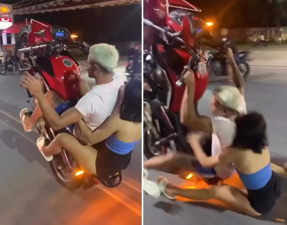 Казалось бы, что может случиться, если ты идиот? Наездник визуально не сильно пострадал, а вот кормилица у девушки будет ещё долго о себе напоминать.