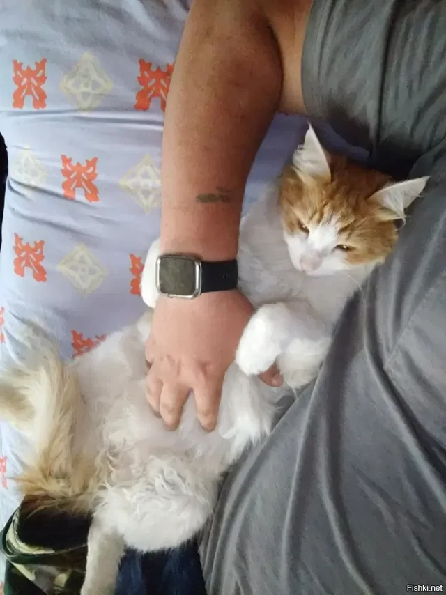 Лежу с котом, жмакаю теплую пузяку, красота )))
