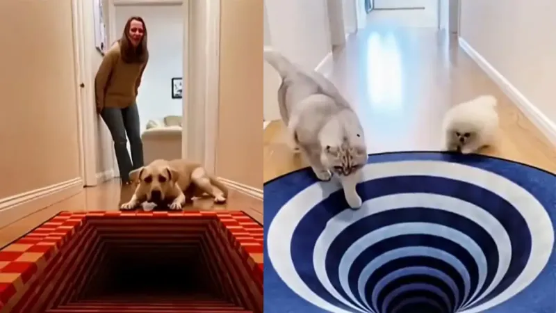 Владельцы 3D-ковров с оптической иллюзией сняли, как их питомцы реагируют на «пропасть» на ковре. Собаки проявляли осторожность и настороженно подходили к краю, а кошки либо игнорировали иллюзию, либо смело исследовали её, «ныряя» в нарисованную глубину.