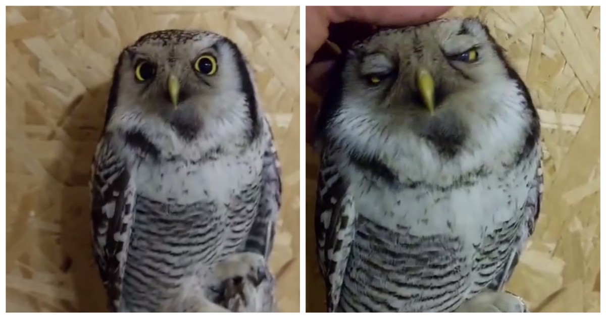 Пернатый житель мини-зоопарка в Магадане наслаждается "почесыванием". Настоящий совиный кайф.