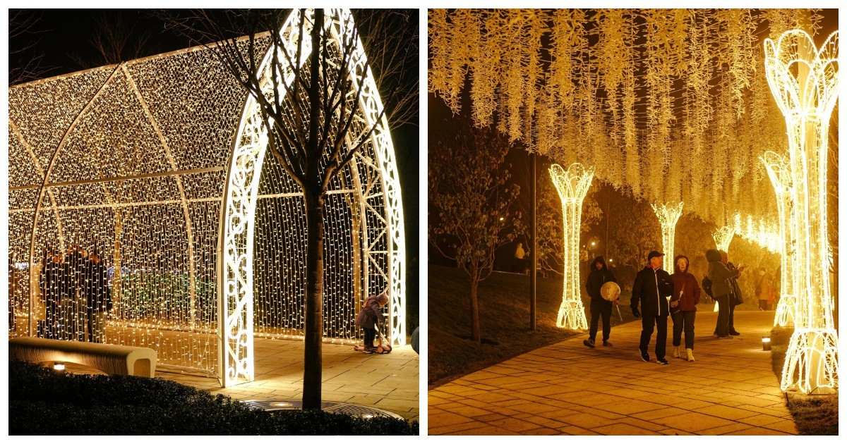 Световой тоннель и бриллиантовая подсветка: парк в Краснодаре засиял тысячами новогодних огней