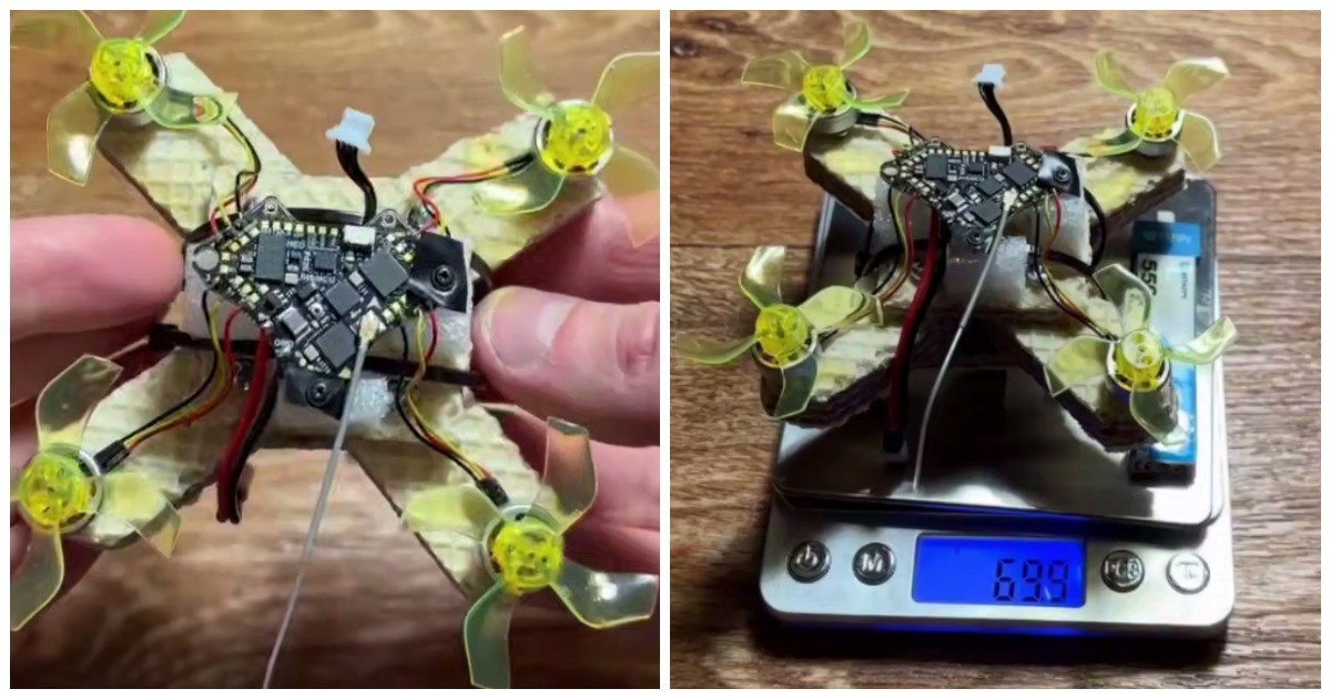 Энтузиаст сделал и испытал "вафледрон". Пропеллеры этого квадрокоптера подключены к вафлям.