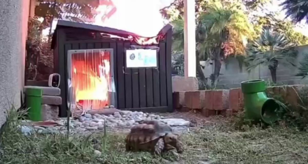 В США в сарае, где жила черепаха, упала тепловая лампа. Через некоторое время в строении начался пожар. Камера видеонаблюдения запечатлела, как черепаха «рванула» от огня в безопасное место.