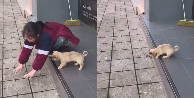 В китайском местечке Шаньси девочка пыталась приучить своего маленького щенка преодолеть страх высоты. Показав своим примером, собака успешно повторила за хозяйкой, чем вызвала восхищение сети.